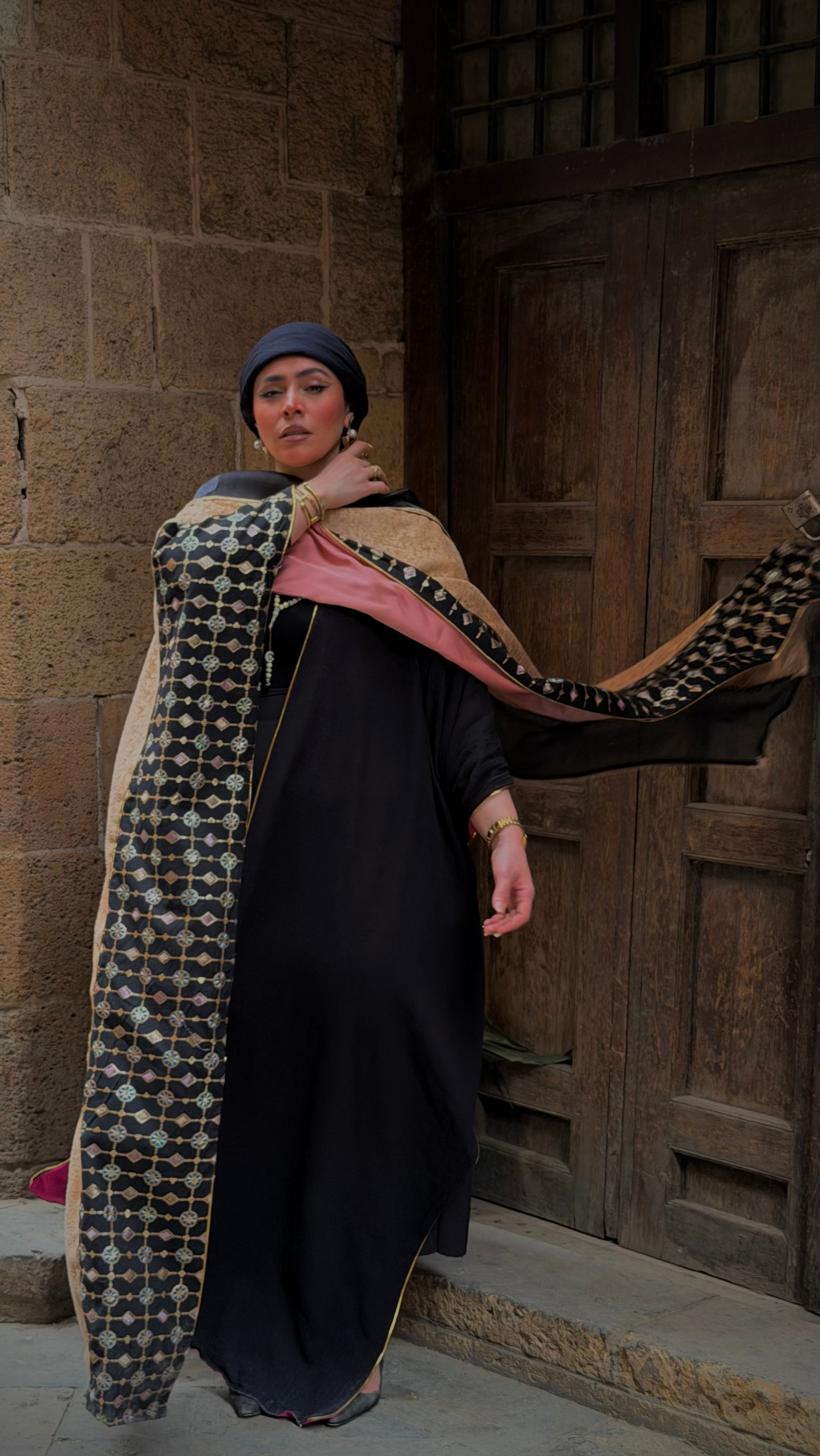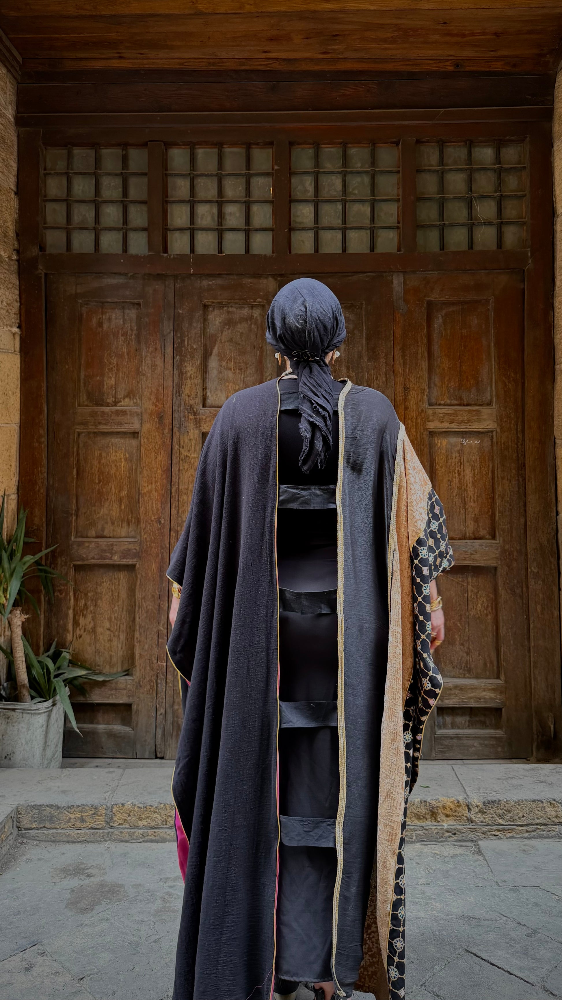 مصنوعة من قماش كتان خام فاخر ممزوج بكتان مطرز هندي و جاكار ذهبي خفيف على الجسد، و كرنكل ناعم الملمس و مبطن بالستان ، وانسيابي في الحركة،مع تطريز بارز بخيوط عالية الجودة تضيف عمقًا وثراءً بصريًا،ما يجعل القطعة مثالية للارتداء الأنيق والمناسبات الرمضانية الراقي